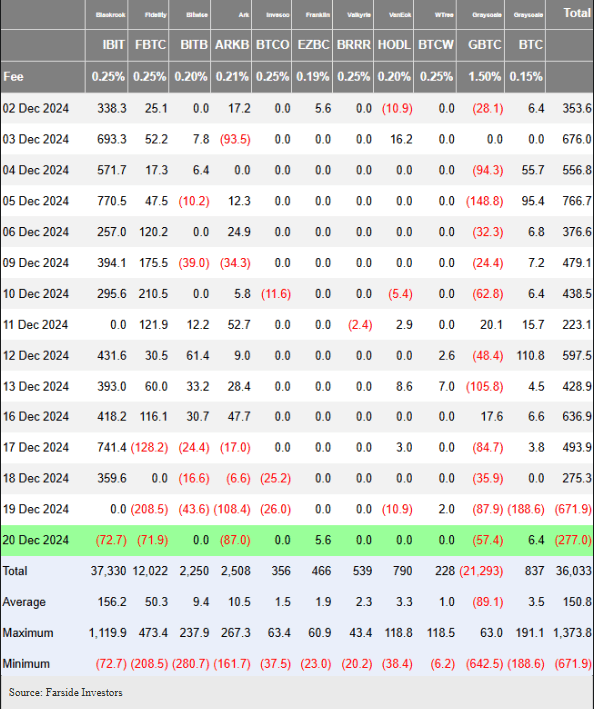 Data showed that the ETF market lost $671.9 million on December 19 and another $277 million in outflows the next day, December 20.